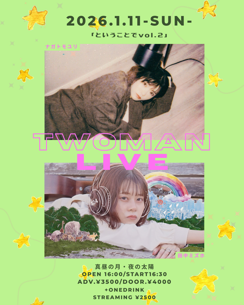 田中ミズホ×ナガトモユリ TOWMAN LIVE 「ということでvol.2」 LIVE 2026/01/11(日) 真昼の月・夜の太陽 地図を表示 OPEN 16:00 / START 16:30 田中ミズホ / ナガトモユリ 前売り 3,500円 / 当日 4,000円(1ドリンク代別) / 配信チケット : 2,500円 【チケットについて】 ・手売りチケット(ライブ物販にて発売中) ・お取り置きは下記、お取り置きフォームへ お取り置きフォーム 配信チケットはこちらから URLをコピーする 報告する